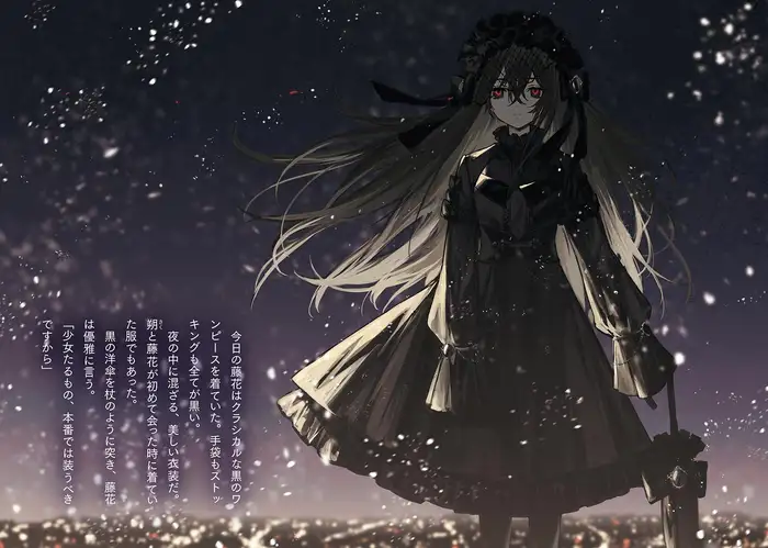 She wore only black, her classical dress reminiscent of a noblewoman's gown. From her stockings to silk gloves, she was clad entirely in a color as dark as night.