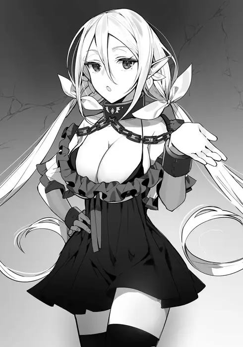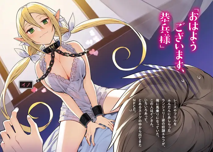 She was covered in ragged clothes that hugged her shapely figure, an iron collar with chains, blonde hair, and pointy ears—this woman was the spitting image of my beloved character, the slave elf Ino.