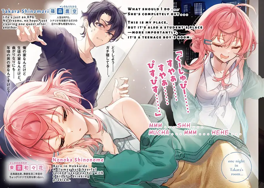 I was completely lost. My homeroom teacher got plastered, mistook my room for hers, and after I proved it was my room, she's passed out cold . . . ? What is this . . . ? There's no way something this ridiculous would actually happen in real life . . . right?