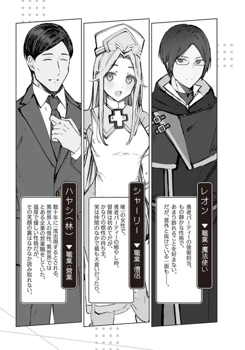 I had heard that the King and important officials had selected Adventurers worthy to be a Hero's companions. These four people would be the members traveling with me. I straightened my posture at the thought.