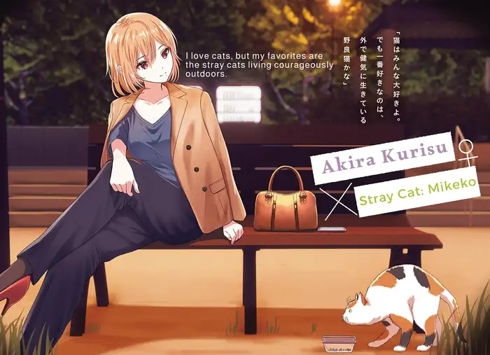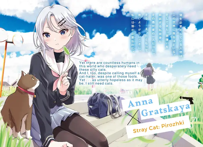 It sat with its front paws neatly together like a manekineko, a lucky cat figurine, quietly gazing up at the girl standing on the slope above it with calm eyes.
