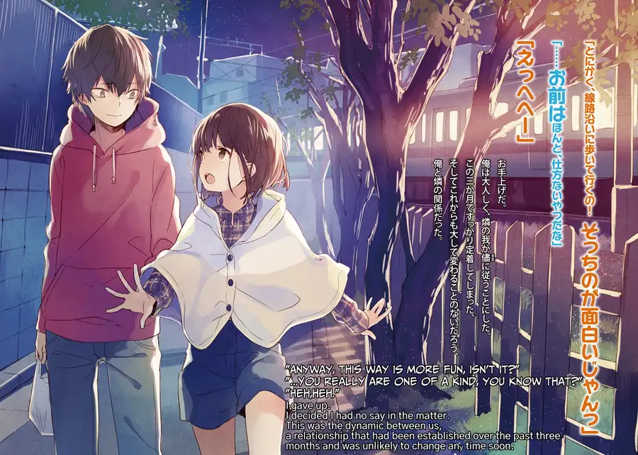 Rin, wearing her jacket, was nervously looking around like a dog as we headed to the nearest convenience store.