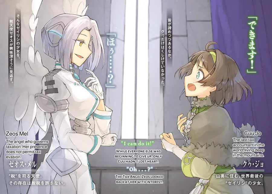 As a Tax Angel, Zeos's mission is to collect taxes after convincing her target.
