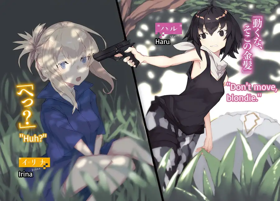 Unfortunately, Haru seemed to have already lost interest in him. Picking up the discarded assault rifle, she stared at its barrel for a moment before swinging around to point it at the man.