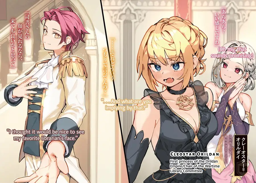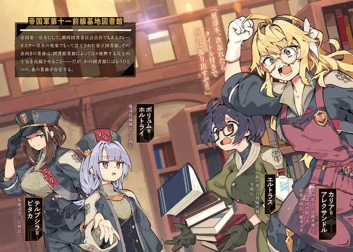 I hereby appoint you as my aide here at the Eleventh Imperial Army Frontline Base Library . . . ! Or something like that. Are you willing to join me? I'll handle getting permission from the general and your unit.