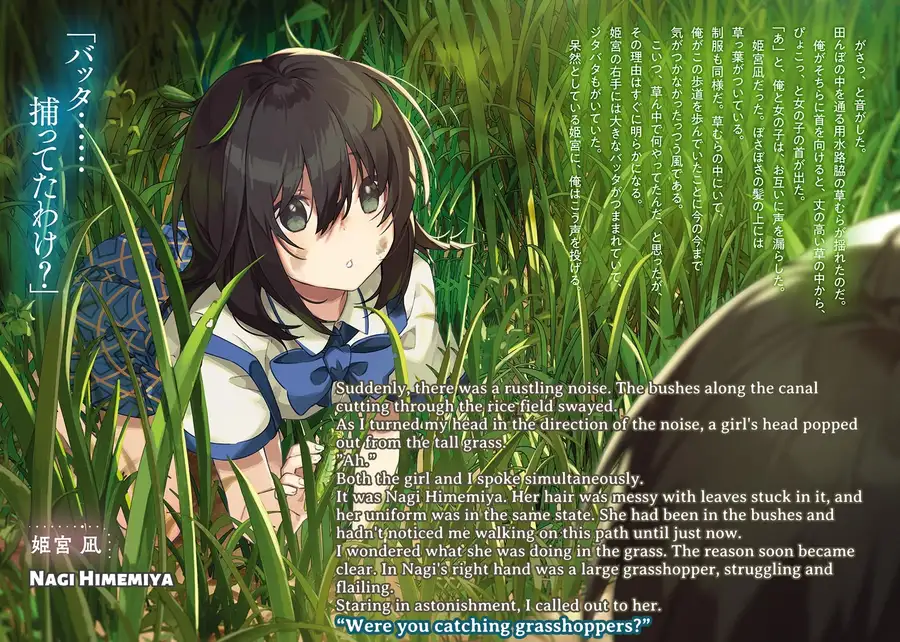 At her grandfather's sudden remark, Nagi looked up from the insect terrarium.