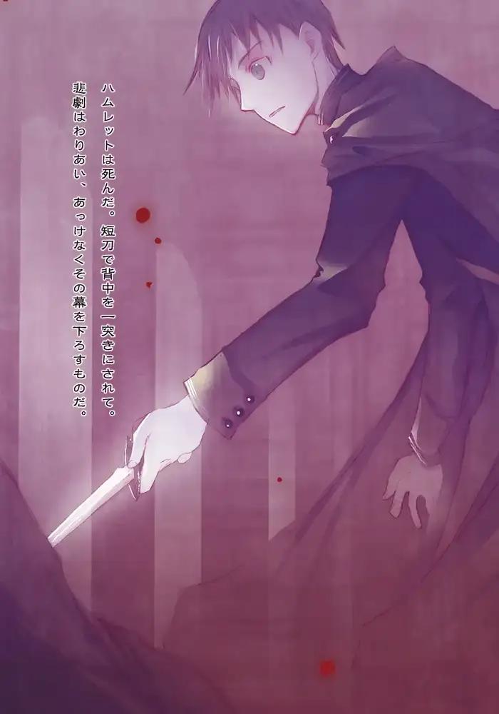 Is it all an act, or is that his true self? I was sent by Claudius to ascertain the truth. Naturally, this man was not actually a murderous brother aspiring for the throne, but simply an actor by the name of Sakai Aritaka. He was the one who played Claudius in that fateful play three years ago, when Komatsu became Hamlet.