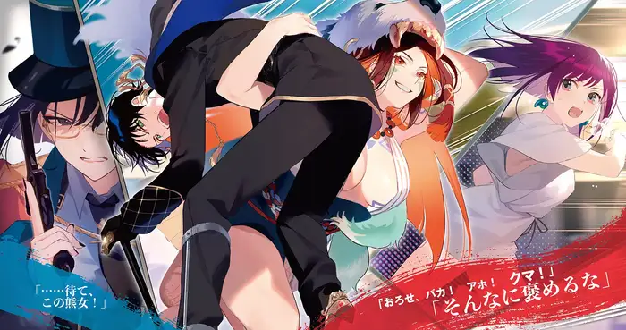 The man next to him was nineteen years old, two years older than Kushihiko. He was tall and well-proportioned, with bronze skin. His red jacket was buttoned up to a high collar, and he wore navy trousers with gold buttons. A white leather belt crossed over his chest, from which hung a sword and a revolver. His jewel-colored eyes vigilantly scanned the surroundings. His military uniform suited him so well that it was almost off-putting.