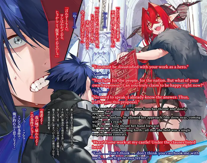 The Demon King thrust her hand forward. No magical attack sprang forth—all that she held was a single employment contract.