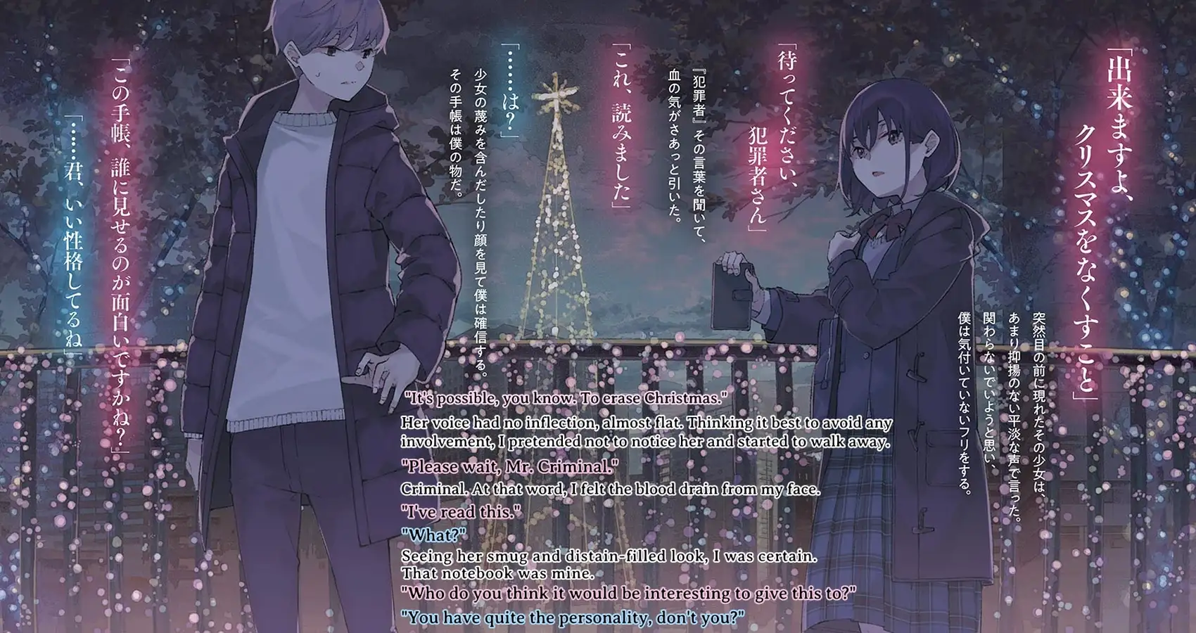 There stood a girl who seemed to be a high school student. Well, I couldn't be certain she was one. But she wore a navy blazer beneath a matching coat, with a white blouse and a tartan skirt. Her black hair was cut in a short bob just above her shoulders, and her features looked youthful. She held a school bag in both hands.